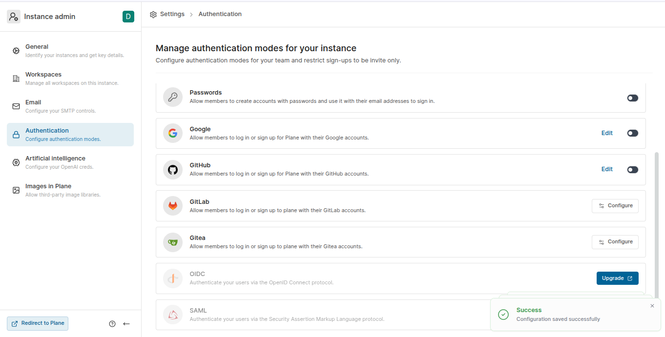 I’ve configured Google OAuth in Plane’s god-mode settings, but I’m unable to enable it.